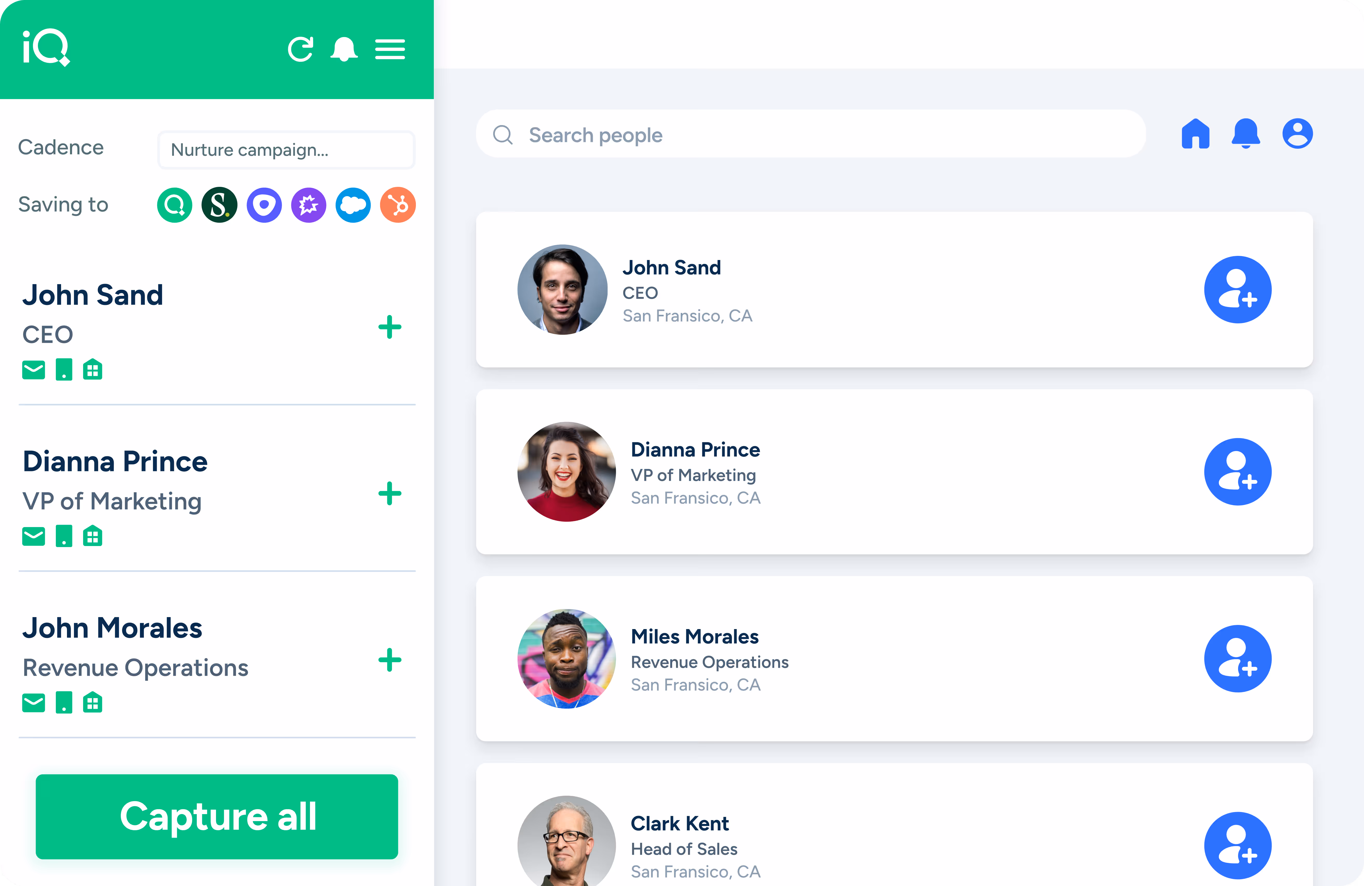 One-click prospecting across the tools sellers use to ensure efficiency and our native integrations with your CRM ensure your database stays healthy.